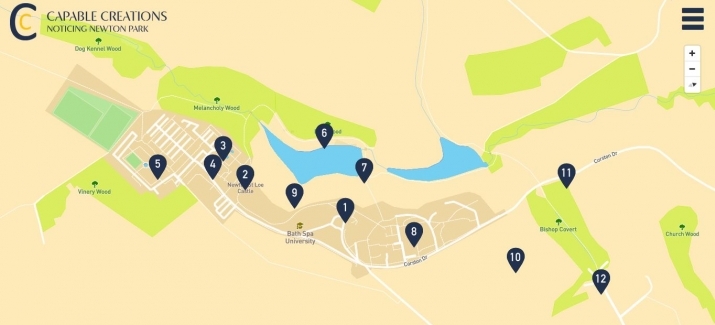 In association with the Capability Brown Festival the students devised Capable Creations: Noticing Newton Park as part of their final degree project. They developed an interactive web-based map and printed leaflet which helps connect students, staff, visitors and the local community with the origins and history of Newton Park, as landscaped by Brown.